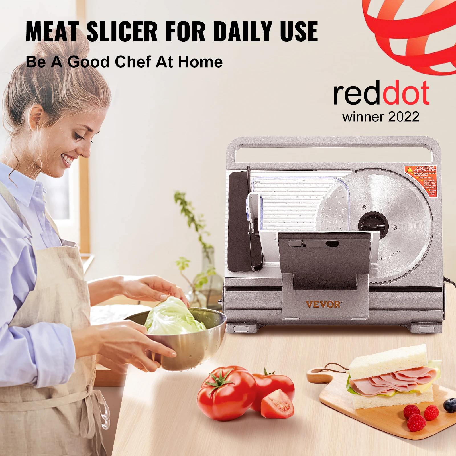 2PCS Blades & Powerful Motor: Equipped with two corrosion-proof 7.5-inch stainless steel blades, our deli meat slicer maintains sharp cutting edges and prevents cross-contamination between raw and cooked foods. The 45W DC motor delivers ample power and rapid speed, effortlessly cutting through various ingredients.