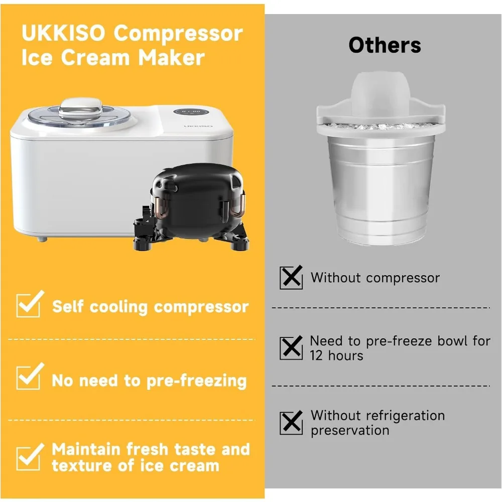 Introducing the UKKISO Compressor Ice Cream and Gelato Maker, your ticket to crafting delicious frozen treats right in the comfort of your home. With a generous capacity of 1.2 quarts, this innovative machine allows you to indulge in decadent ice cream, creamy gelato, and refreshing sorbet whenever the craving strikes.