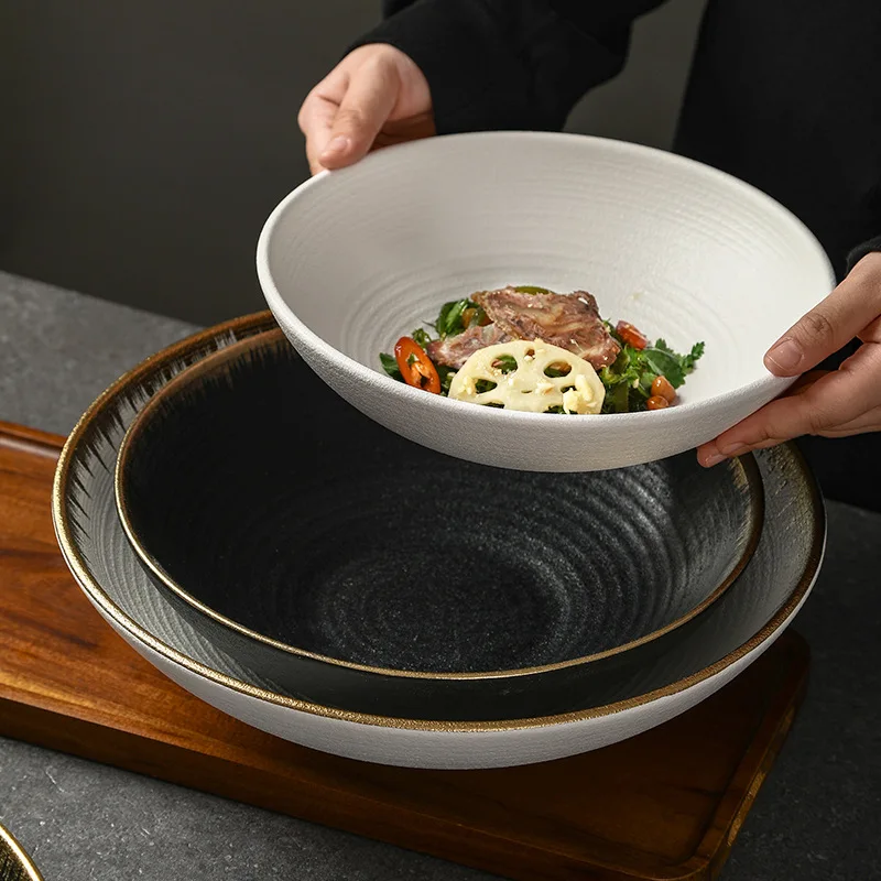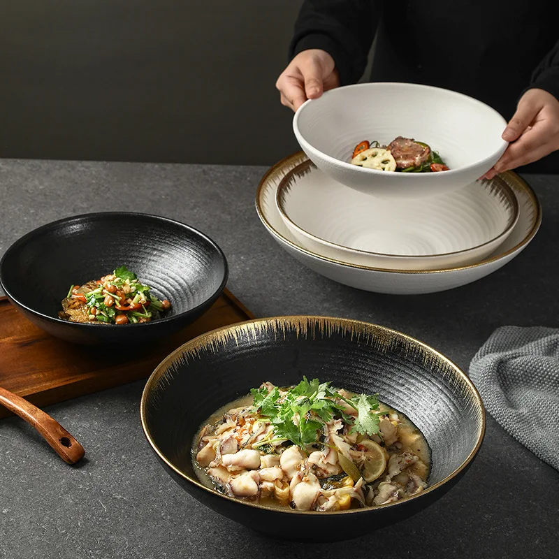 Introducing the Large Basin of Pickled Fish, a specialized bowl designed for serving domestic large boiled pork slices and advanced Japanese creative cold dishes. This bowl boasts a generous size, making it perfect for presenting and enjoying your favorite culinary creations.