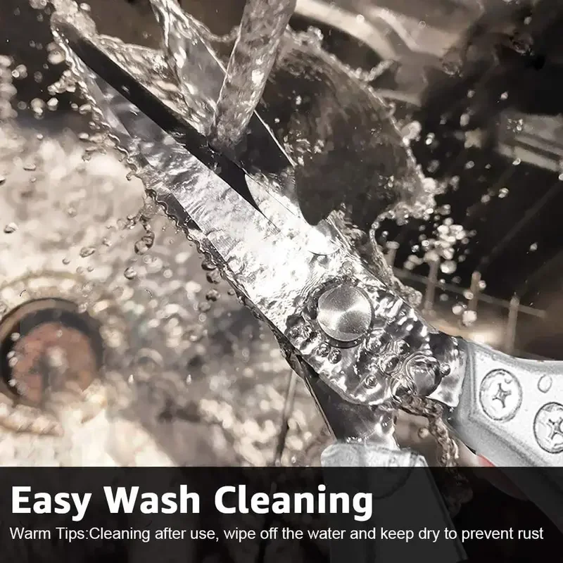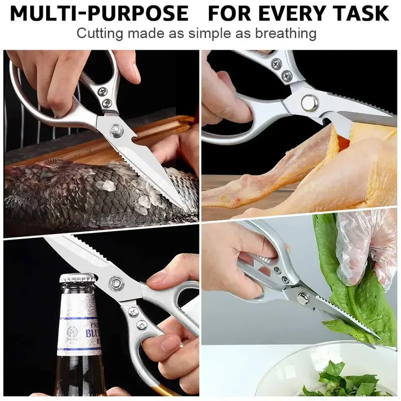 Introducing our Kitchen Scissors, a versatile tool designed to make your kitchen tasks easier than ever! Crafted from top-grade stainless steel with aluminum non-slip handles, these scissors are durable, rust-resistant, and corrosion-resistant. Not just ordinary scissors, they also function as a bottle opener, fish scale scraper, and nutcracker, offering multifunctional convenience.